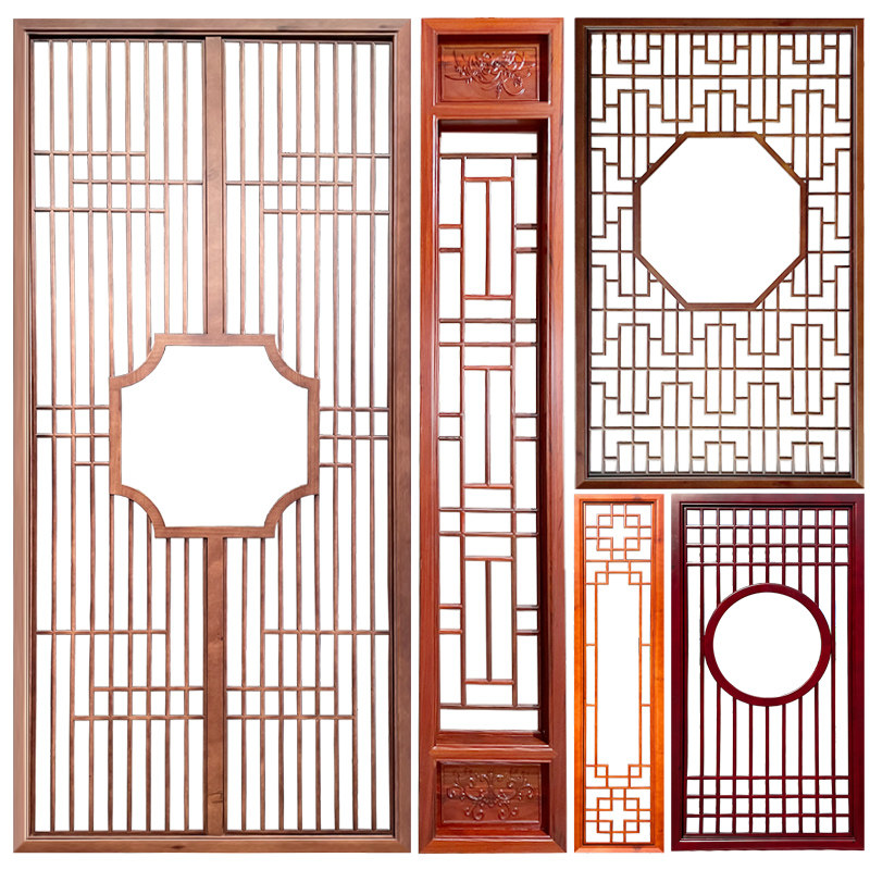 Custom Dongyang wood carving antique doors and windows Chinese solid wood grid screen partition TV background wall grid hollow