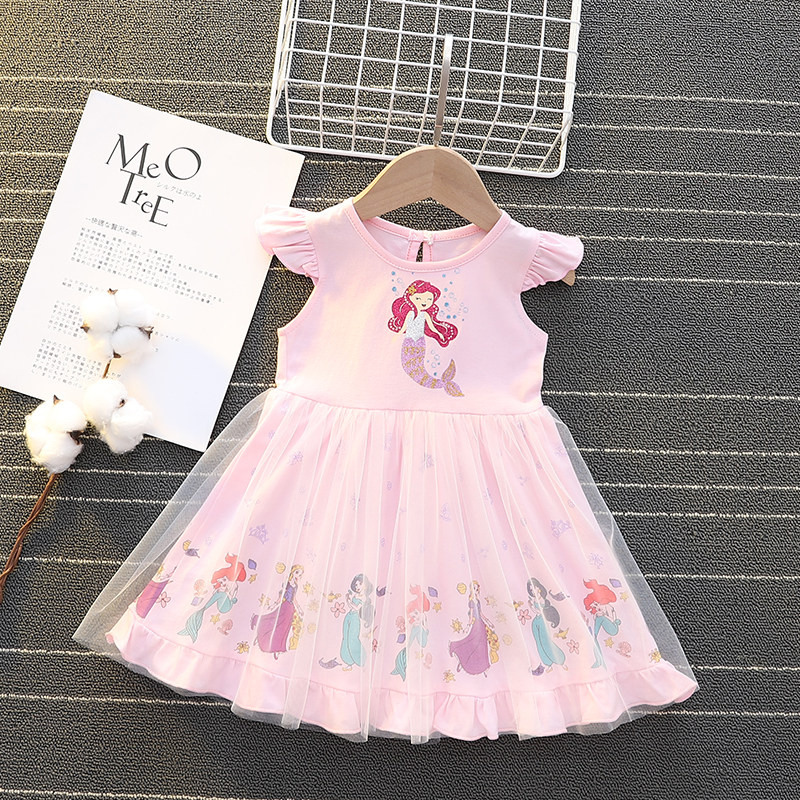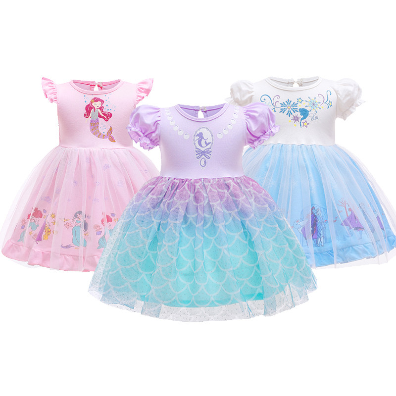 22 foreign trade summer clothes new Frozen Aisha Mermaid Princess small and medium girls baby cotton dress