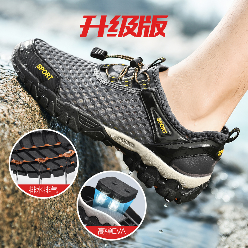 Western Regions Camel Treatment Men's Shoes Summer Outdoor Hiking Shoes Men's Non-slip Breathable River Tracking Shoes Men's Casual Mesh Shoes