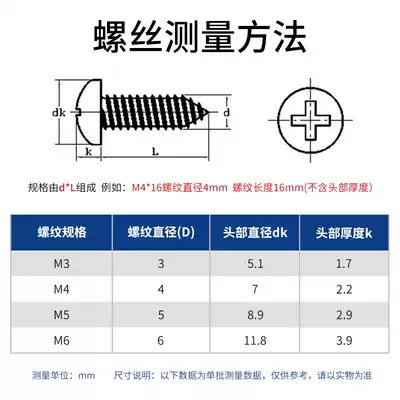 Round head self-tapping screws m3m4m5m6 small nails 304 stainless steel cross big head pan head Wood