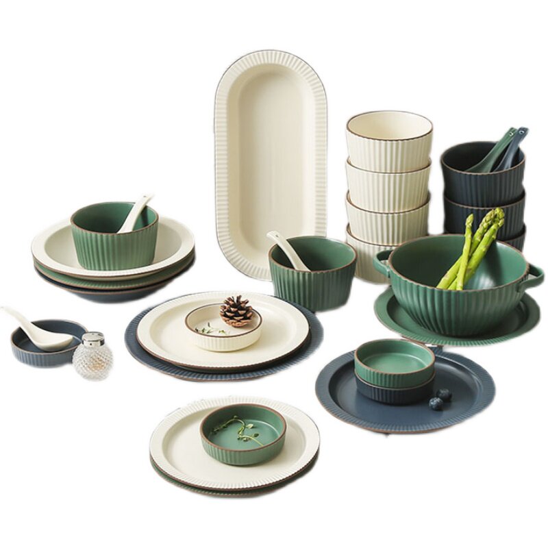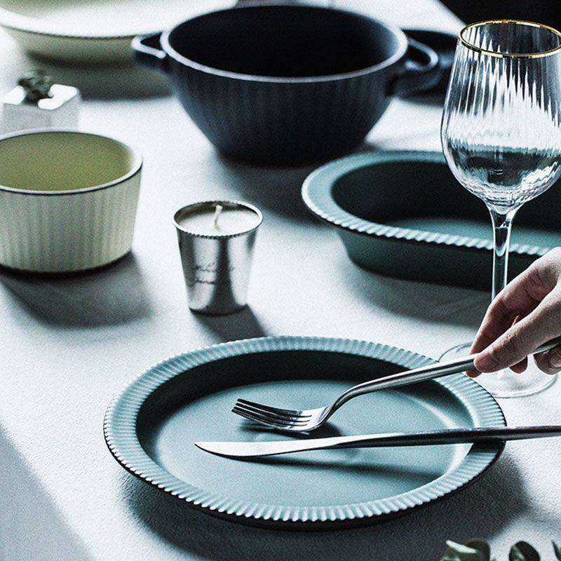 Fulongyuan dish set home light luxury Nordic tableware set bowl plate color glaze creative solid color ceramic gift