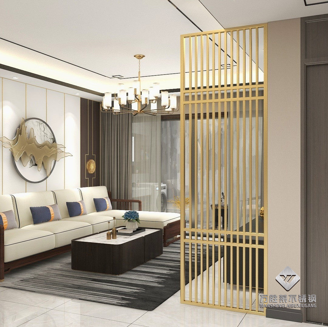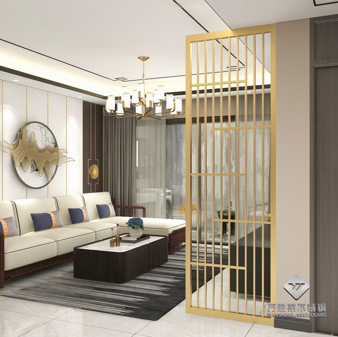 Stainless Steel Screen Partition New Chinese Xuanguan Entrance Office Hotel Hollowed-out Grid Metal Decoration Custom