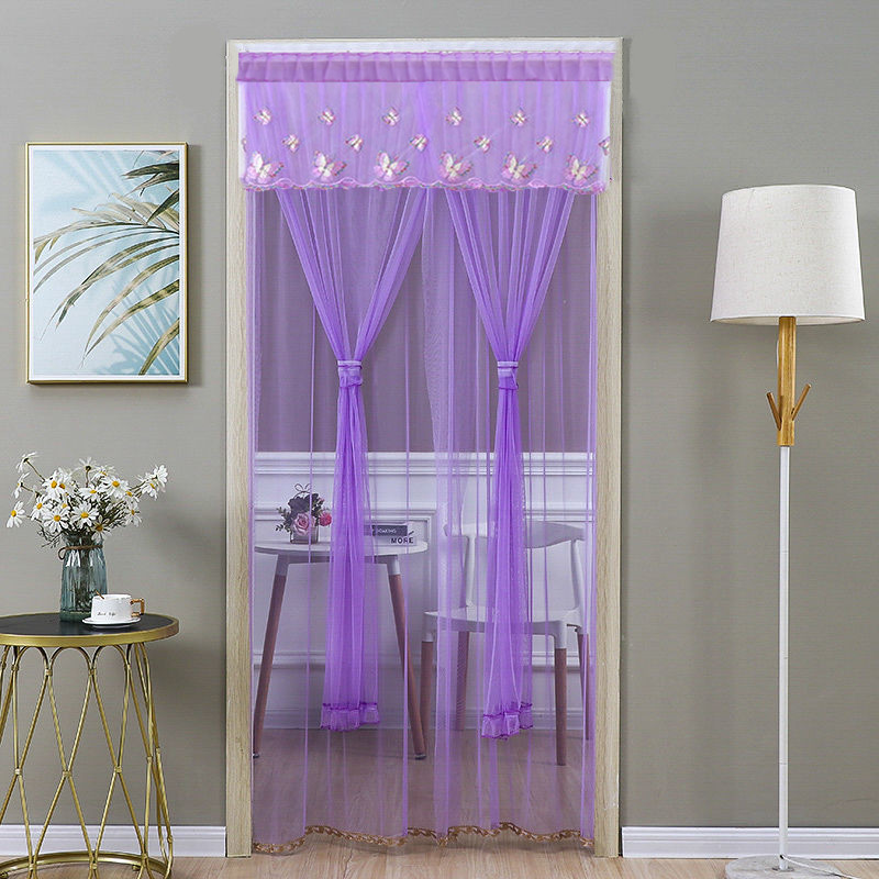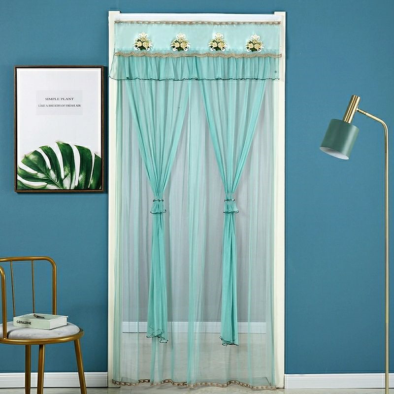 Four Seasons Lace Door Curtain Free of punch Home Anti-mosquito screen Bedroom Kitchen Makeup Room Partition curtain Snow spinning Mid-curtain Summer