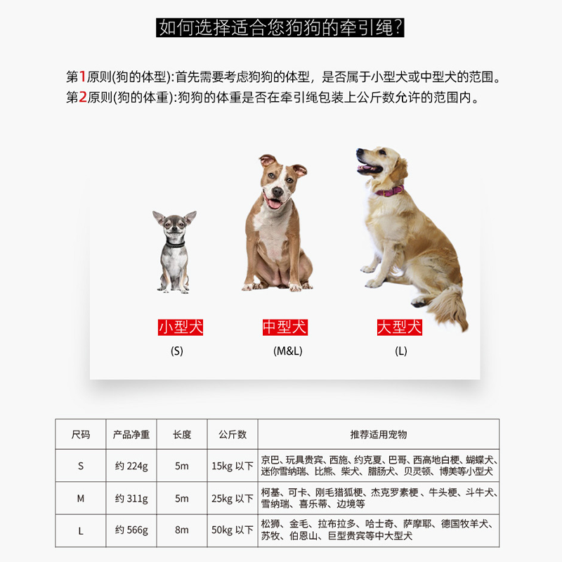 3 m length (under weight 12kg) 5 m long (under weight 15kg) 5 m long (under weight 25kg) 8 m Long (under weight 50kg) Note