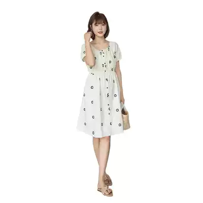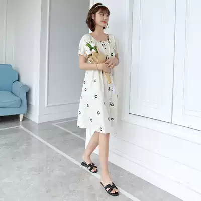 Pregnant women's dress summer round neck short sleeve medium and long skirt Korean version of loose cotton Fashion Women's pregnant women's clothing