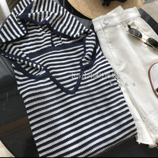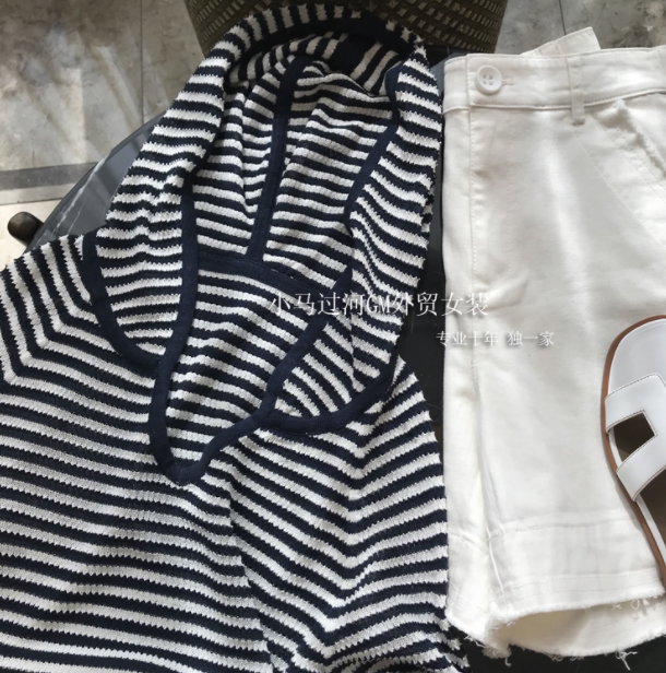 Brand Fold Discount Store Mall Withdrawal Cabinet Women's Foreign Trade Cut Mark Method Striped Stitch Sweatshirt With Cap Jacket Thin Woman Spring Summer