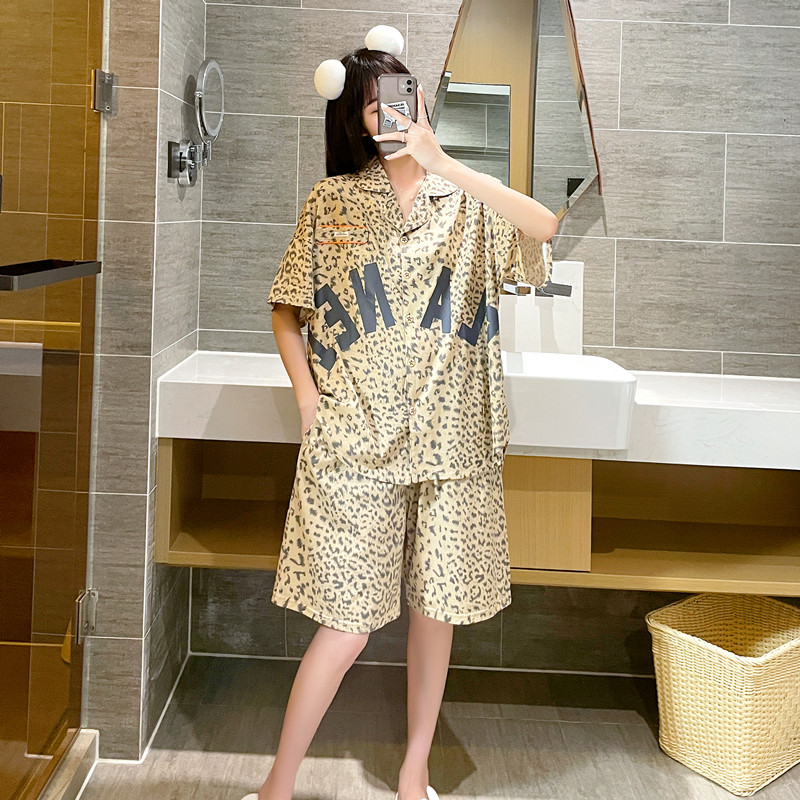 2021 new pajamas women's summer plus size 200 catties pure cotton short-sleeved cardigan fat mm loose home service