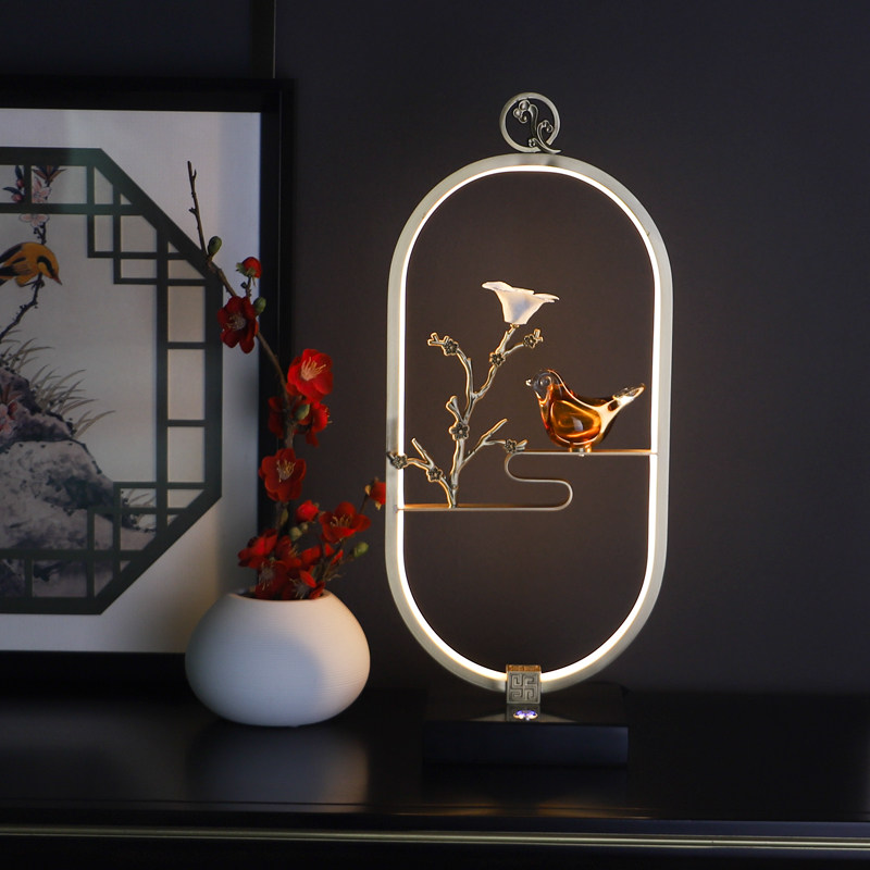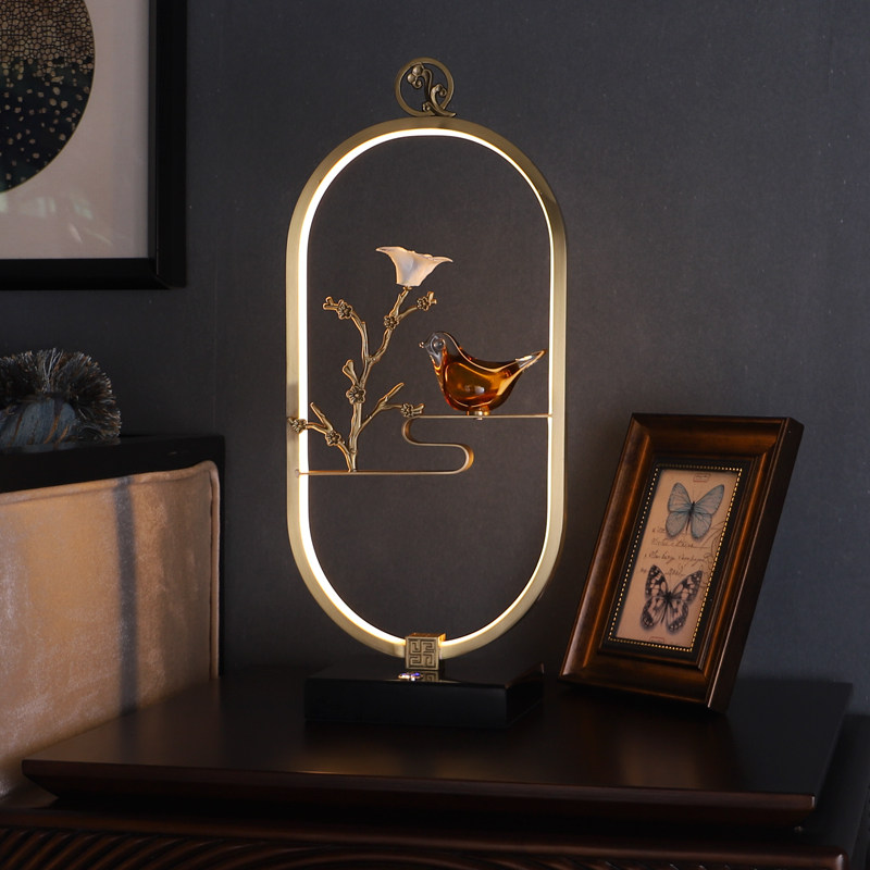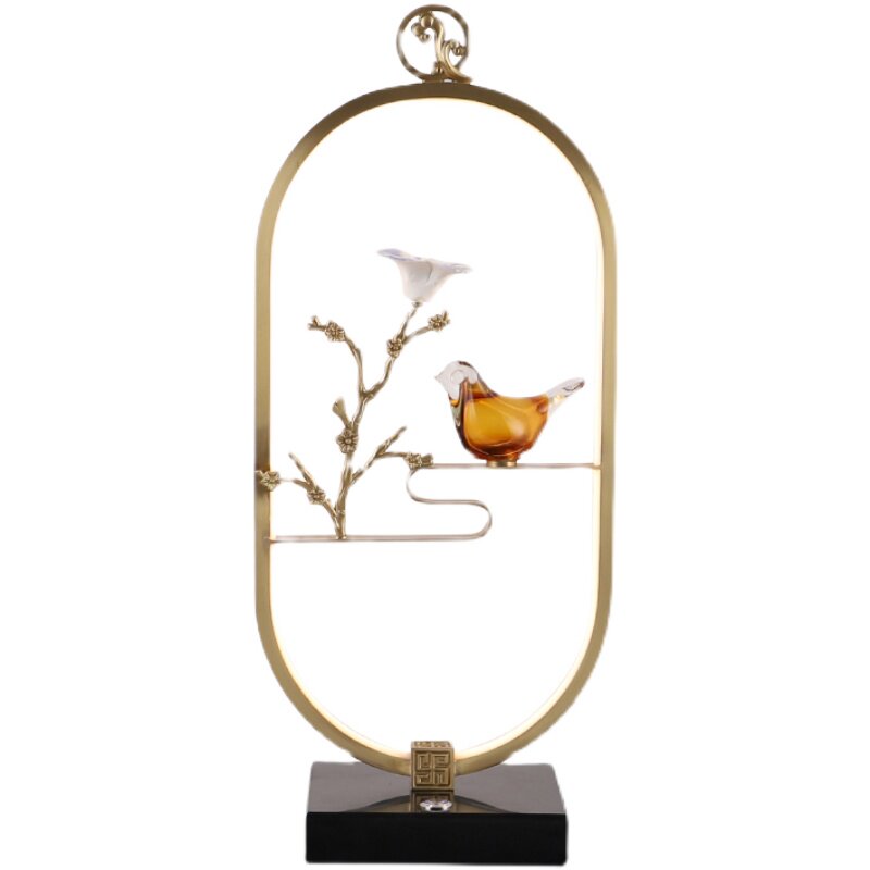 New Chinese Table Light Bed Headlights Bedroom Living Room Full Copper Romantic Cozy Nemesis Red Wedding Bird-in-Flowers Fragrant Zen