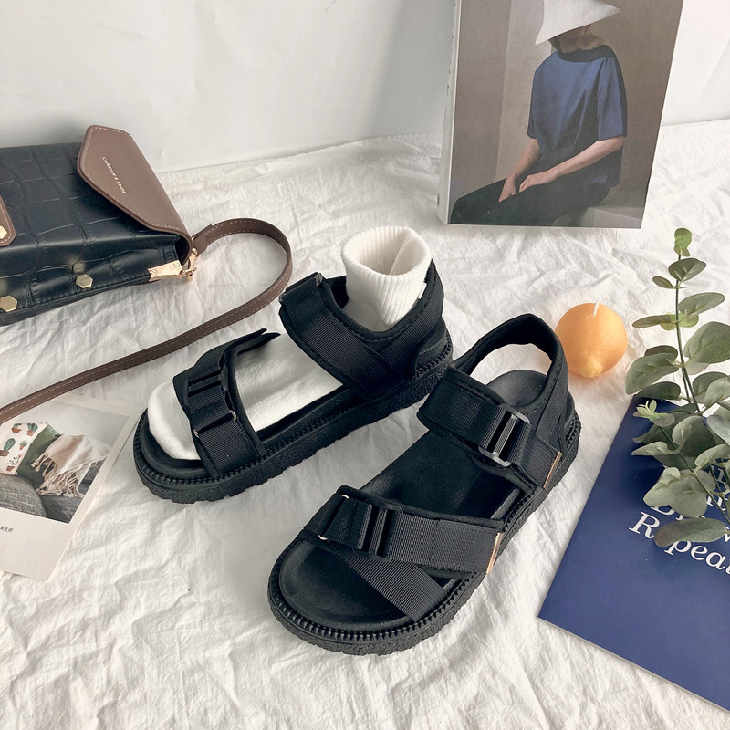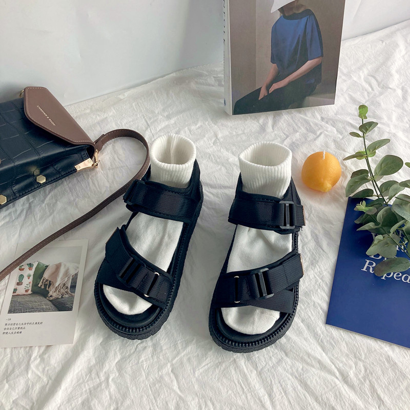 Velcro sports thick-soled sandals female students all-match 2021 new summer ulzzang Harajuku trend ins