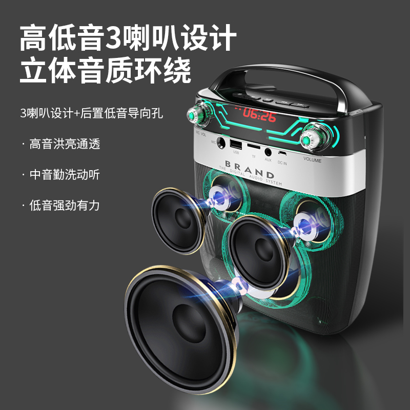 Newman Bluetooth Speaker Low Sound Cannon Outdoor Square Dance Sound 3 Horn Speaker Speaker Portable Mini Sound Home K Song