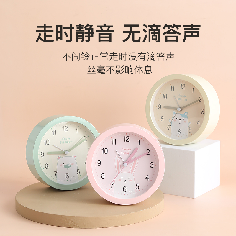 Alarm clock for students with children girl cartoon cute creative boy Bedroom desktop night light mute bed artifact