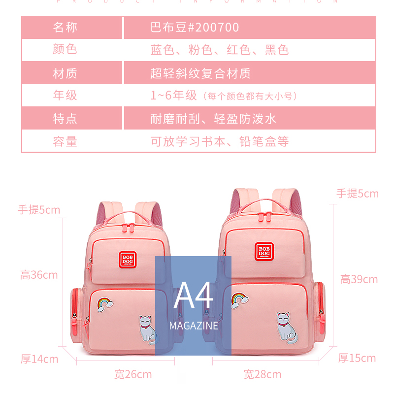 Babu bean girls 123 to 6th grade girls Ultra-light ridge protection load reduction children's backpack Primary school school bag