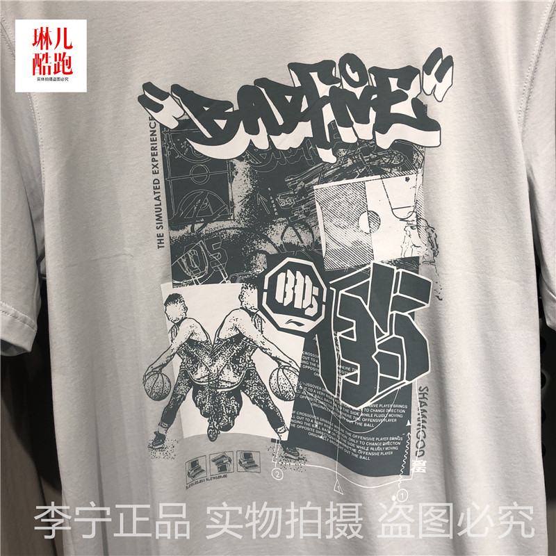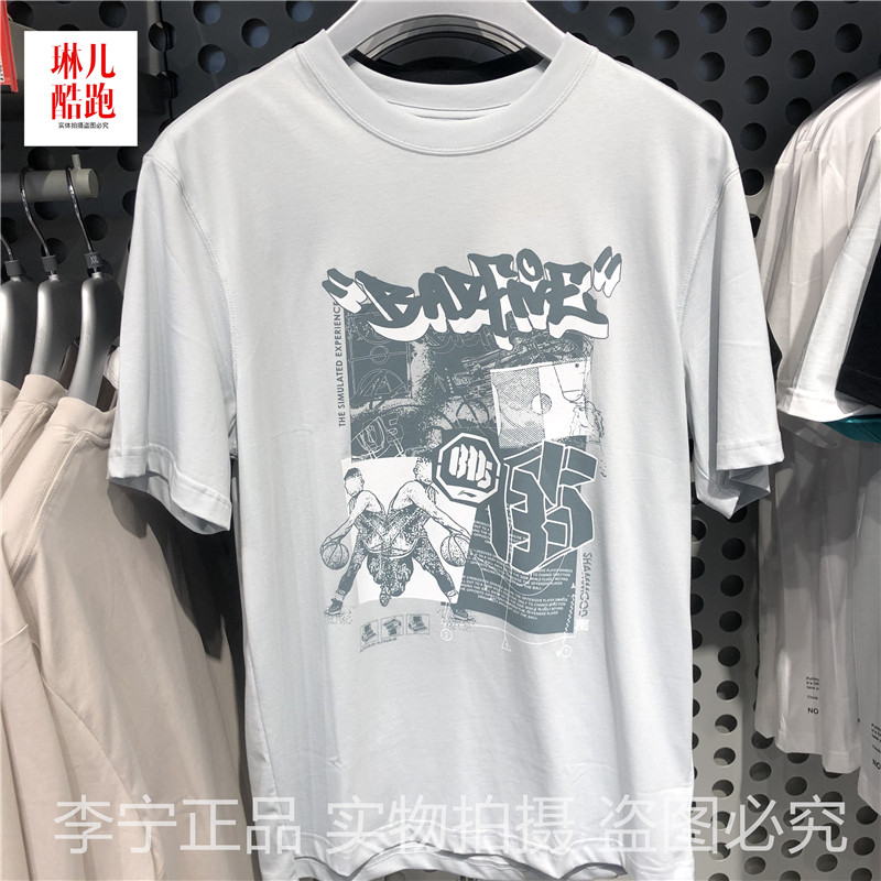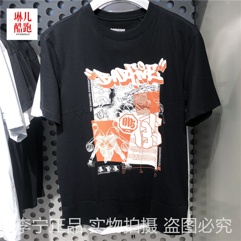 Li Ning Sports T-shirt 2021 Summer New Badfive series round-collar casual short sleeve cultural shirt AHSR137