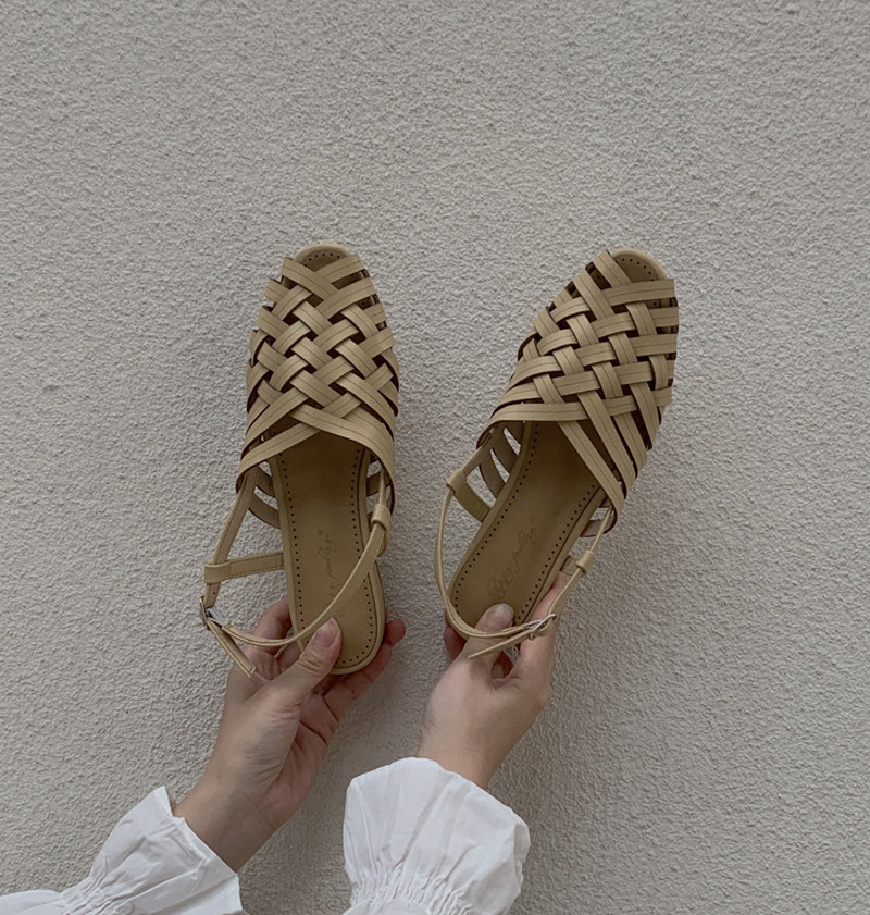 chic retro wind ~ 2021 new summer 100 hitchhiking Korean version Baotou hollowed-out small heel sandal women