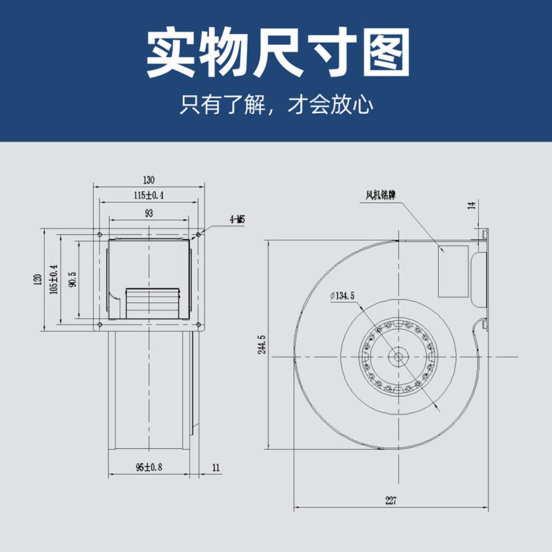 Front tilting work frequency centrifugal blower 160mm metal impeller high temperature resistant blower outer rotor fan L2FH160
