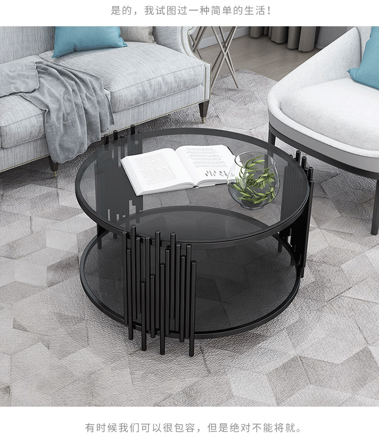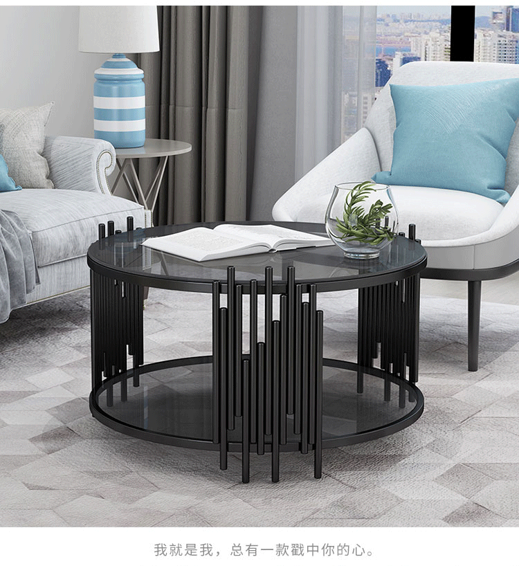 Nordic small apartment light luxury rock slab marble coffee table combination modern living room round creative home coffee table simple