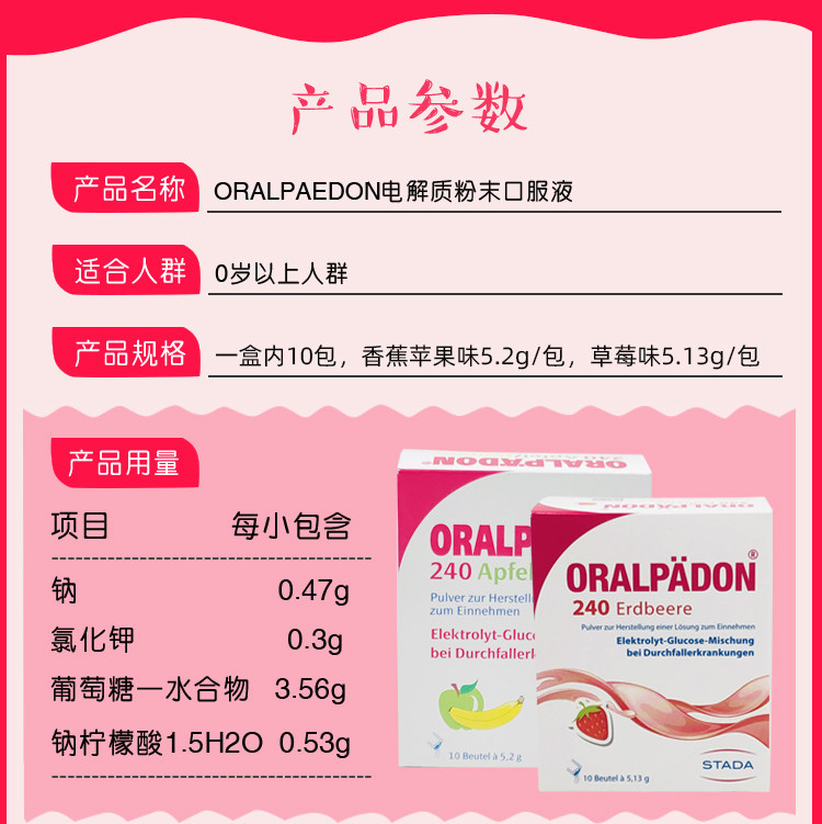 German Oralpadon electrolyte water fast moisturizing rehydration salt baby diarrhea with fever strawberry banana apple