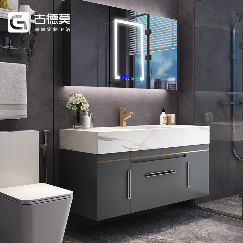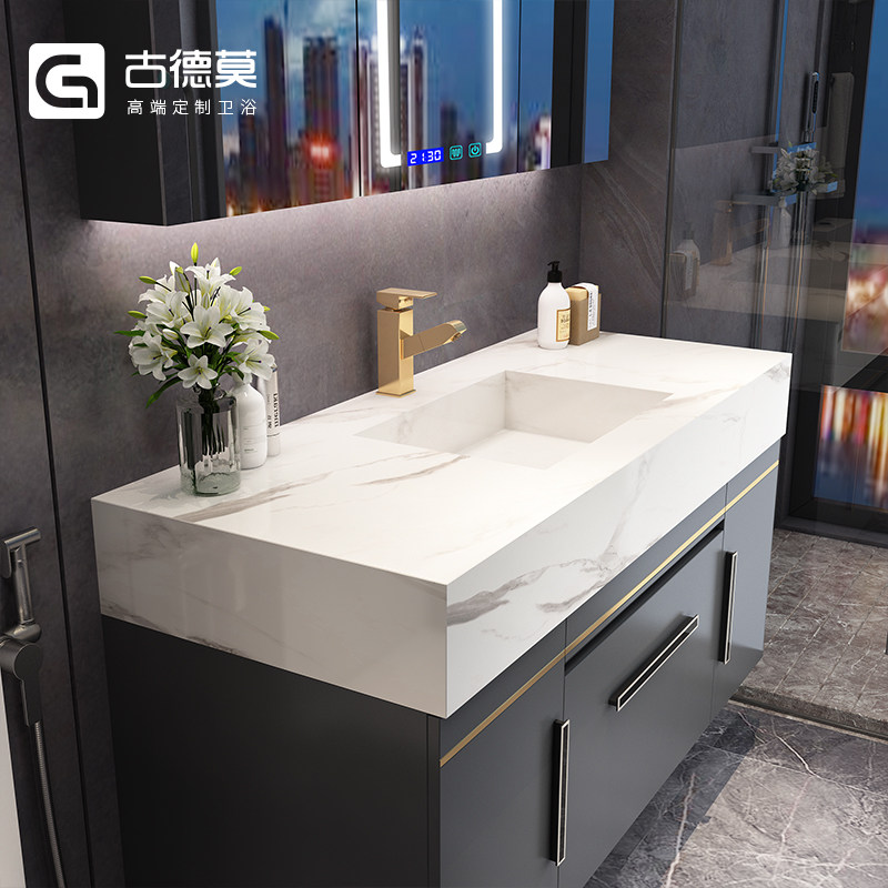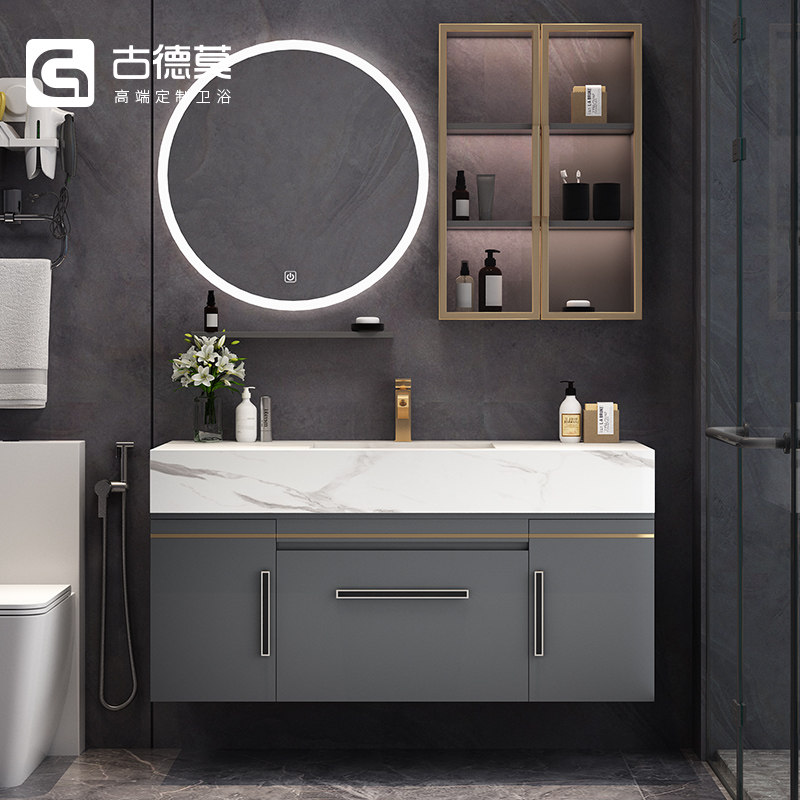 Modern Minimalist Rock Board Integrated Round Mirror Bath Cabinet Combination Intellectualized Makeup Room Wash Washout Washbasin Custom