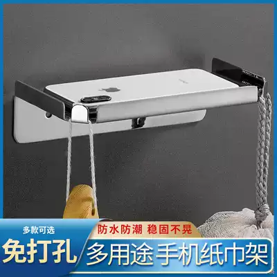 Roll toilet paper holder lengthened stainless steel powder room mobile phone shelf Toilet toilet paper box wall-mounted tissue paper holder free of punching