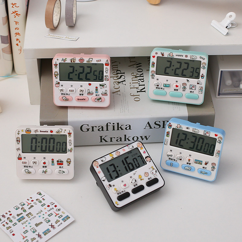 Timer alarm clock stopwatch time management electronic timer to remind students to learn self-discipline, making questions kitchen mute
