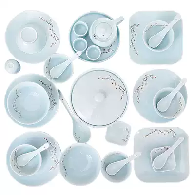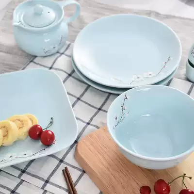 Blue cherry blossom ceramic 9-piece set Pink cherry blossom ceramic 28-piece set First love 20-piece set gray