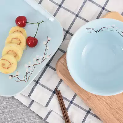 Dish set Household Japanese cherry blossom bowls, chopsticks, bowls, ceramic noodle bowls, soup bowls, dishes, bowls, eating combinations, cutlery