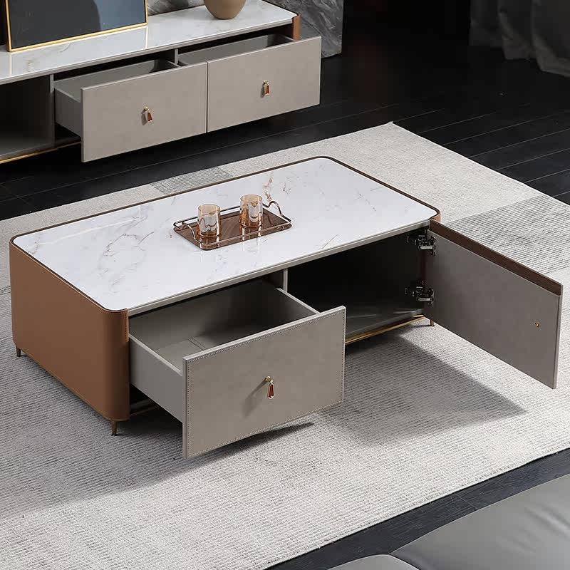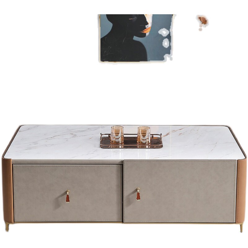 2021 new coffee table light luxury modern design minimalist small apartment living room slate saddle leather rectangular coffee table