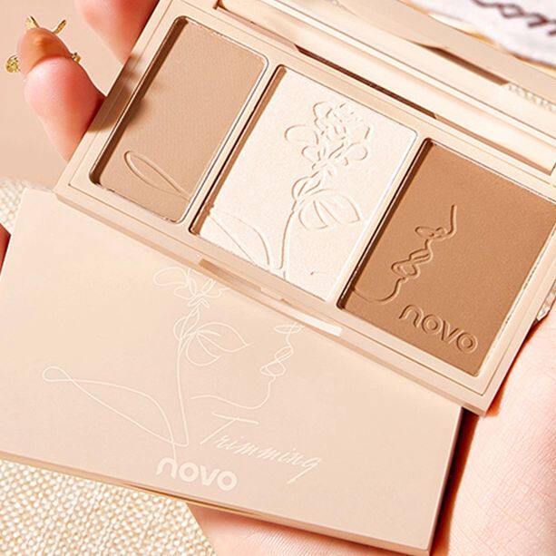 NOVO tricolour high light repairing disc shadow nose and shadow three-in-one body disc flash powder face bright matt and fine and sparkling