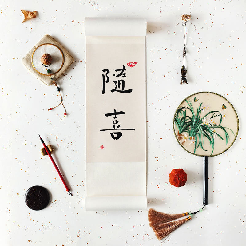 (Find one) handwritten vertical shaft hand painted calligraphy scroll hanging word painting upright painting shaft Buddhist system is true to meditation Zen hang painting