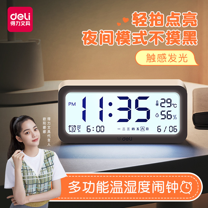Deli electronic alarm clock Student alarm headboard Simple smart clock Multi-function luminous mute children's bedroom
