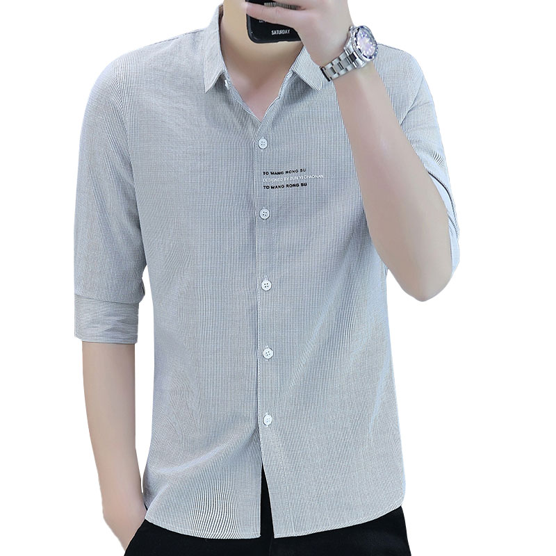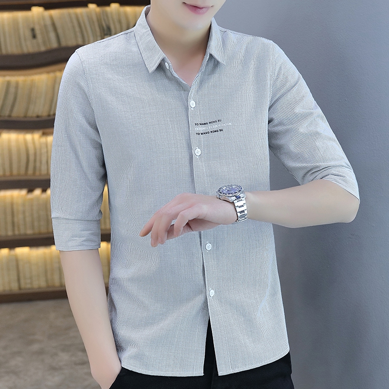 Men short sleeve striped shirt Summer slim fit shirt business career positive dress handsome air trendy casual inner lap shirt