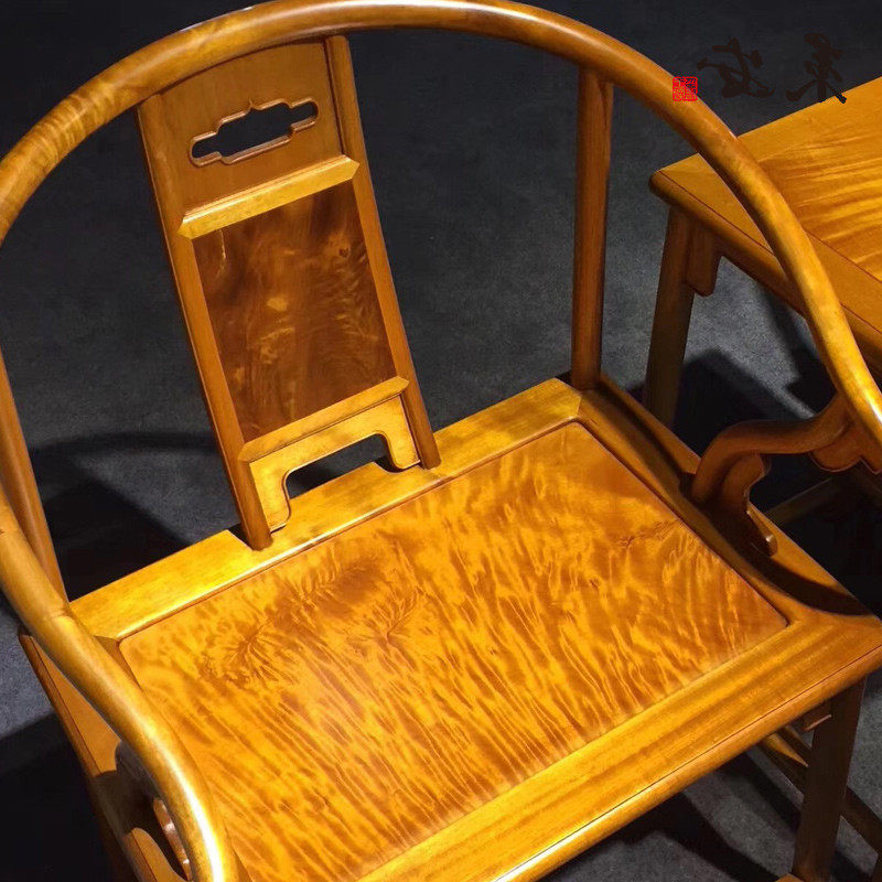 Gold silk Nan wood ring chair Three sets of Chinese style antique furniture Furniture Chairs Official Hat Chair Solid Wood Palace Chair