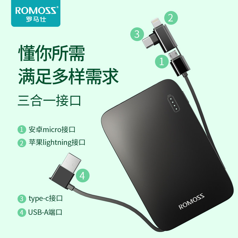 Roman see mobile charging with its own line 10000 mAh time Type-c with plug three-in-one suitable for Huawei Apple Xiaomi ultra-thin small portable action power
