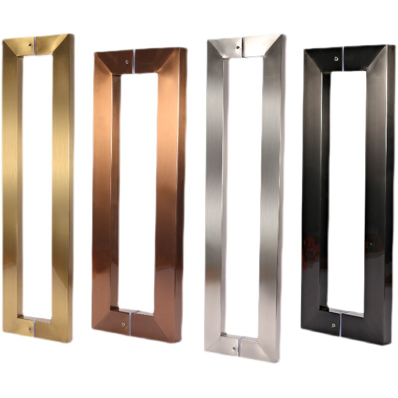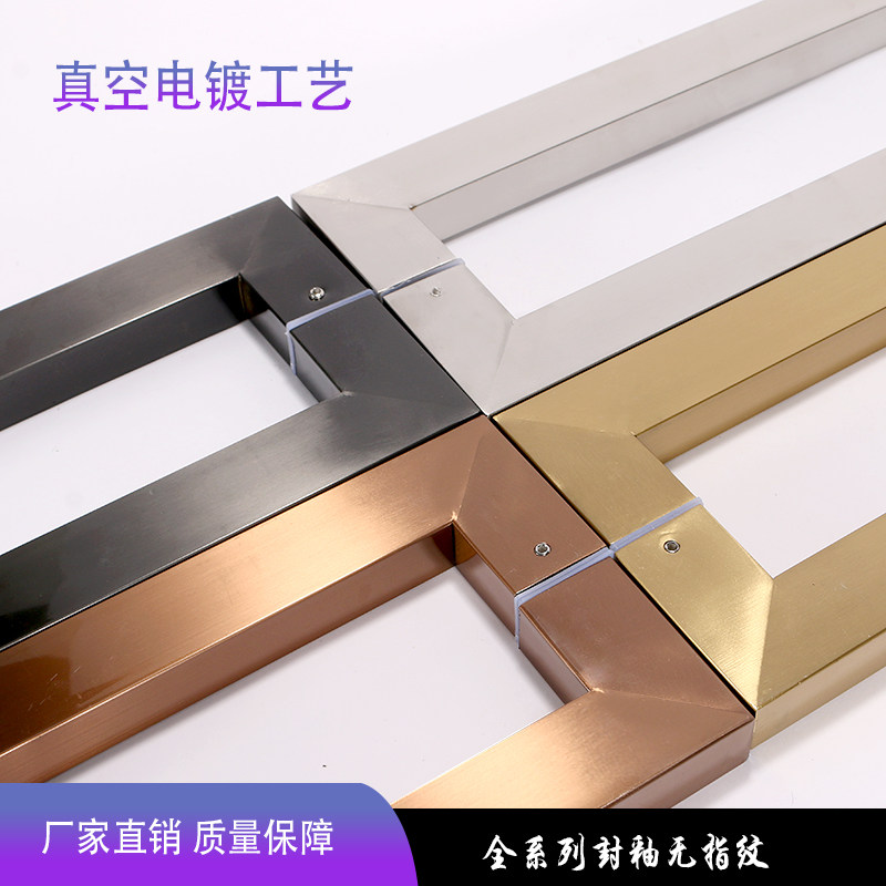 Factory direct glass door handle thickened electroplating square tube titanium alloy black titanium rose gold stainless steel door wooden door handle