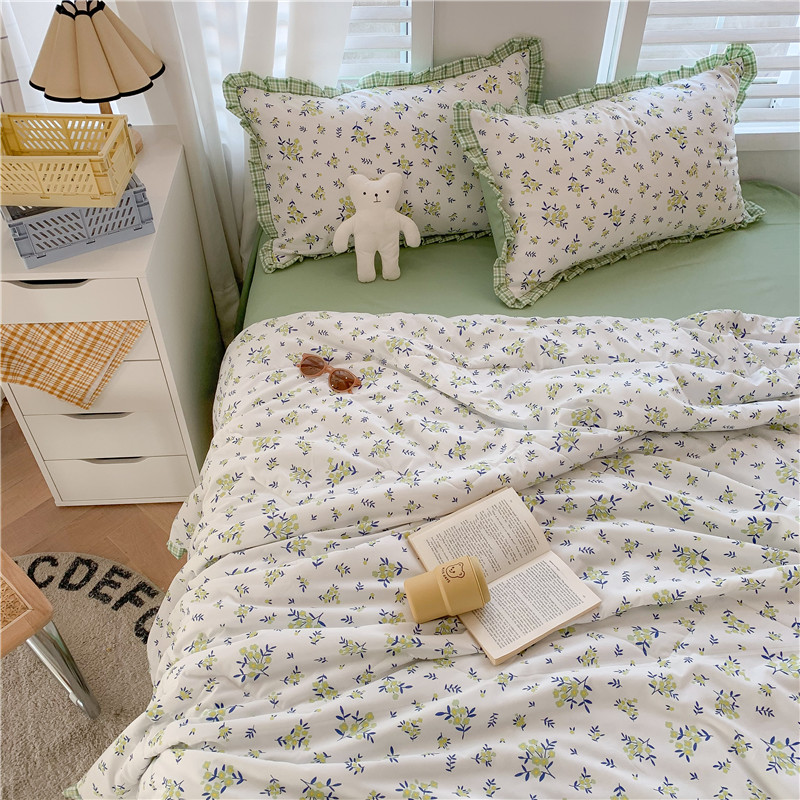 Summer new small floral four-piece set flounces thin air-conditioning quilt small fresh children's summer cool quilt student summer quilt