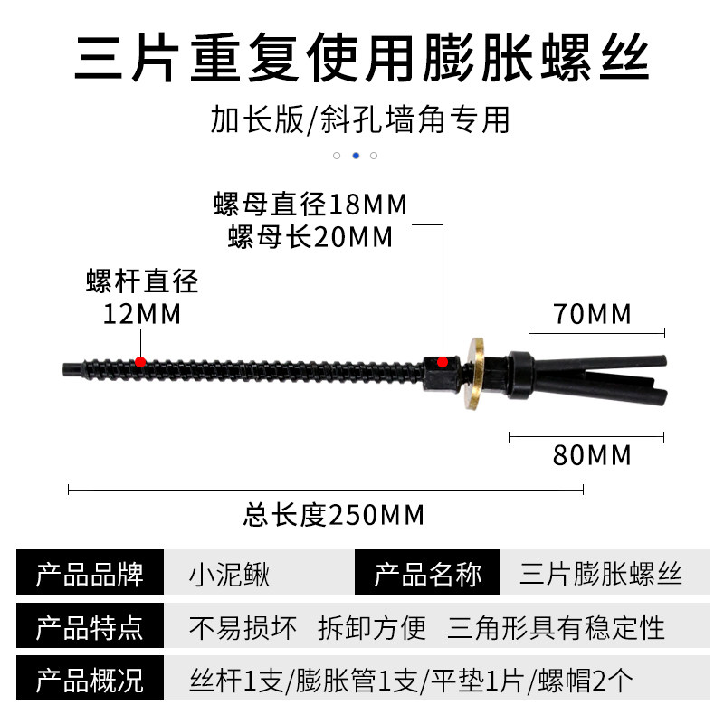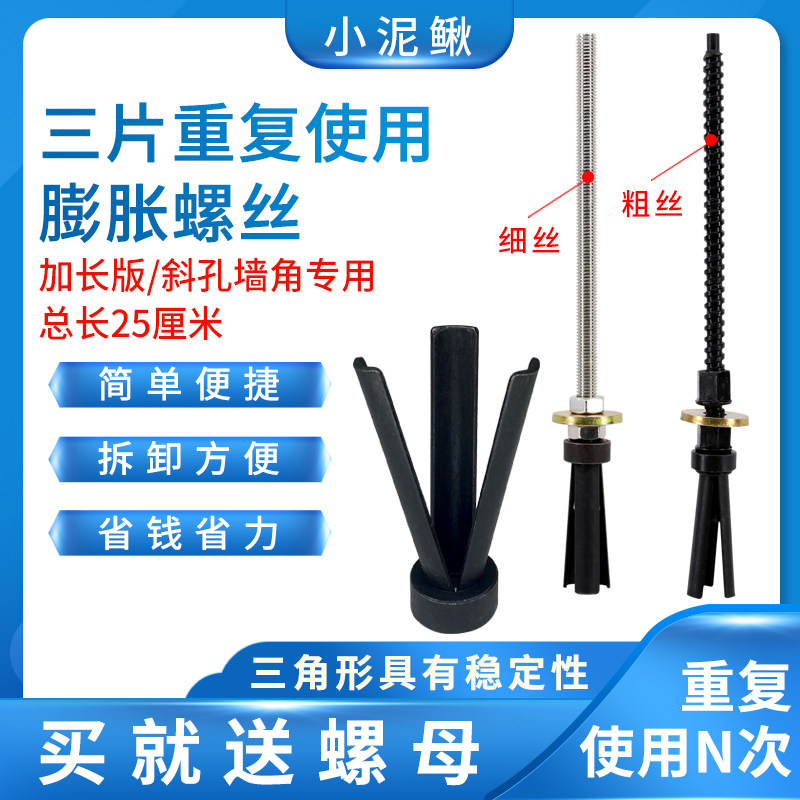 Drilling machine punching machine inclined hole wall angle lengthened reusable expansion screw three sheets of fluffy pipe bolt small loach
