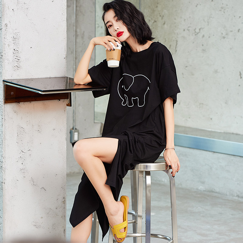 Summer temperament goddess ~ skin soft glutinous cotton skirt long knee - home casual dress