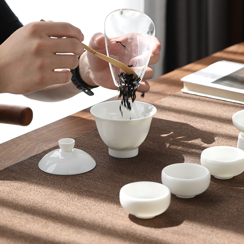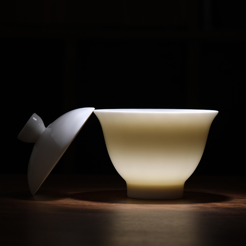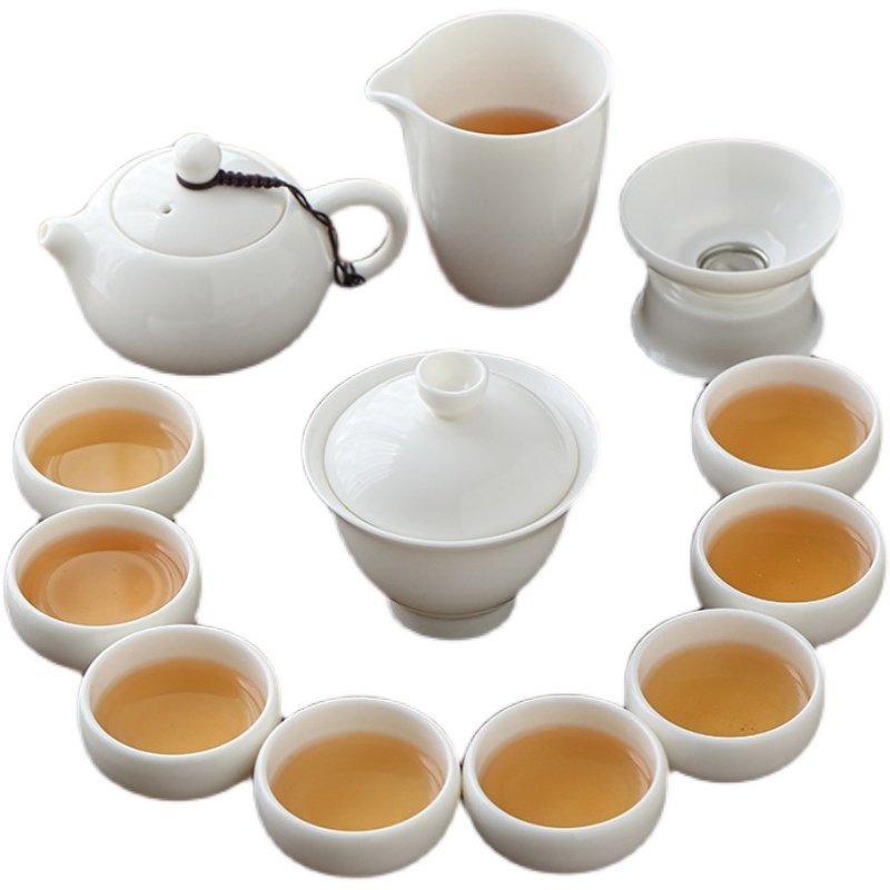 Sheep Jade office home Dehui white porcelain kung fu tea set tea cup teapot tea leak public Cup three-up bowl set
