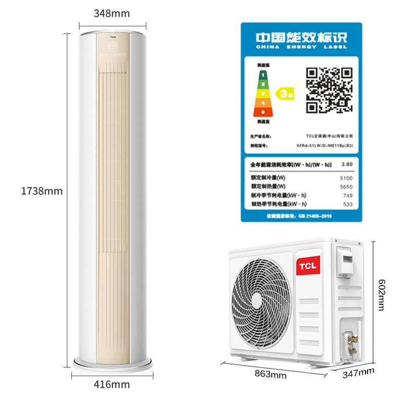(TCL55)TCL large 2p new energy efficiency variable frequency vertical energy-saving intelligent home heating and cooling cabinet machine air conditioning 51B3