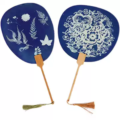 Blue Sun Fan 7 different shapes thick double-sided pure white paper fan Blue Sun diy material package children's handmade material