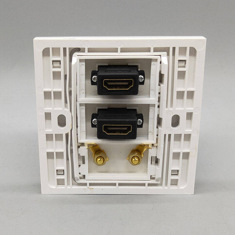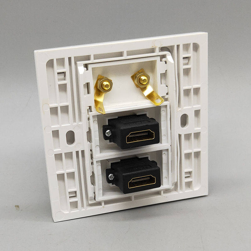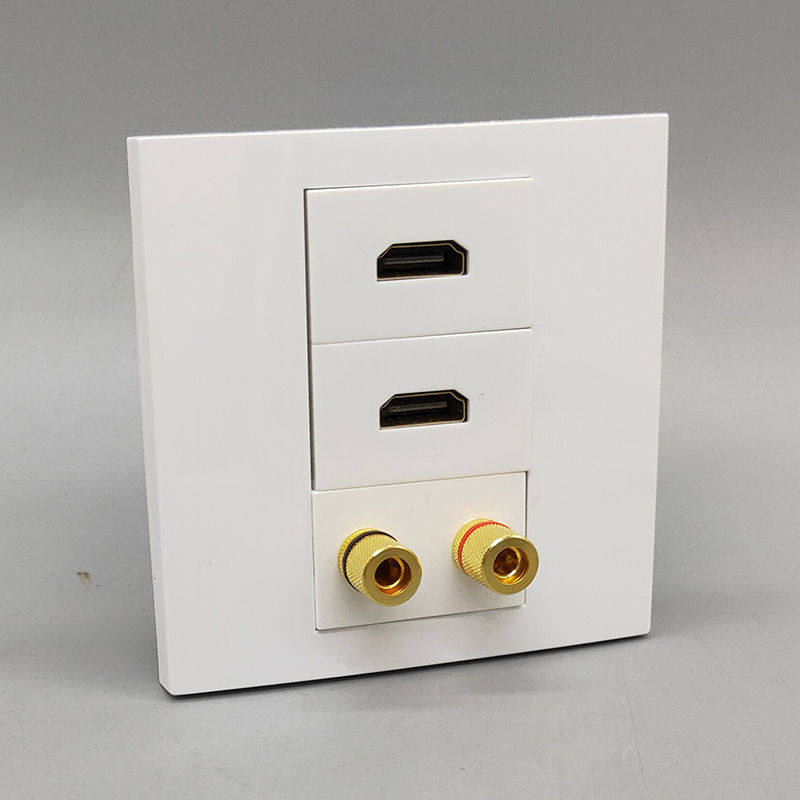 Type 86 dual-bit 4KHDMI high-definition TV straight plug 2 audio speakers audio multimedia wall socket panel