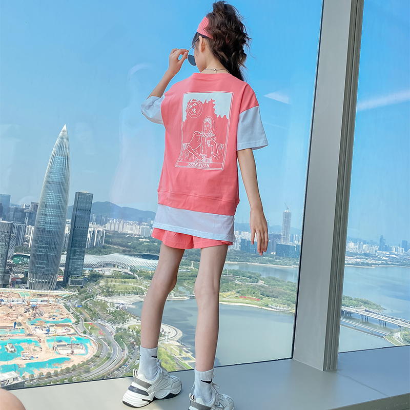 Girls Summer Yanites Suite 2021 new children Korean version online Red CUHK Scout and casual Two-style children's clothing