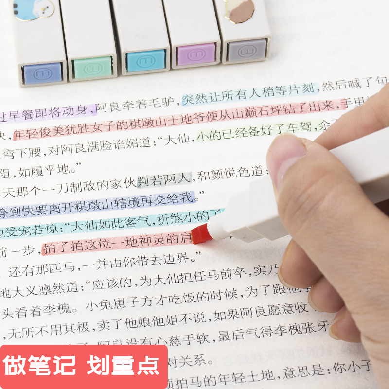 Round rod highlighter Qingyan sweet series 6 hard tips to send stickers Round rod three 6 color highlighter pens to send affordable stickers Round rod highlighter Qingyan salt series 6 hard tips to send stickers Square rod highlighter sweet series 6 pieces to send