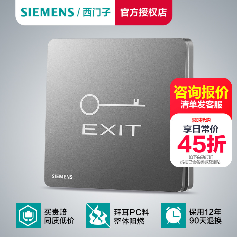 Siemens access control switch glass door out button power switch socket panel Ruizhi Aurora gray 86 type