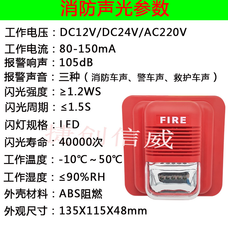 Fire Audible and audible alarm 12V24V220 voice audible and visual horn integrated fire LED flashing lights non-coding
