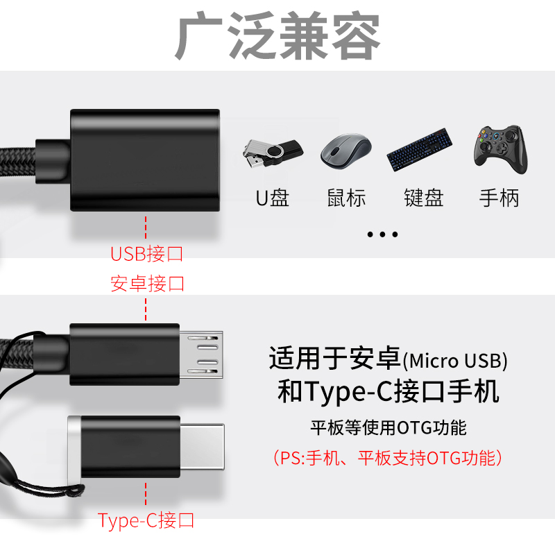 Suitable for Huawei OTG adapter two-in-one android typec to usb millet oppo adapter U disk keyboard mouse