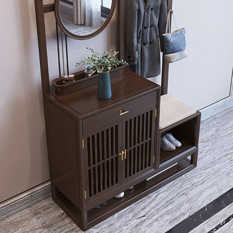 New Chinese-style solid wood porch cabinet entrance hall entry shoe cabinet multi-functional storage living room hanger floor storage change shoe stool