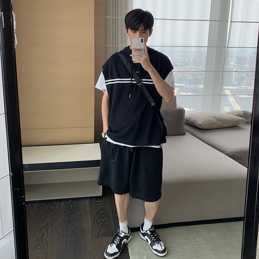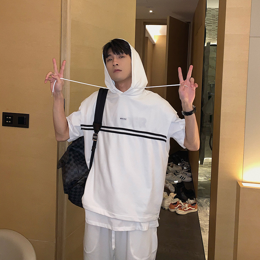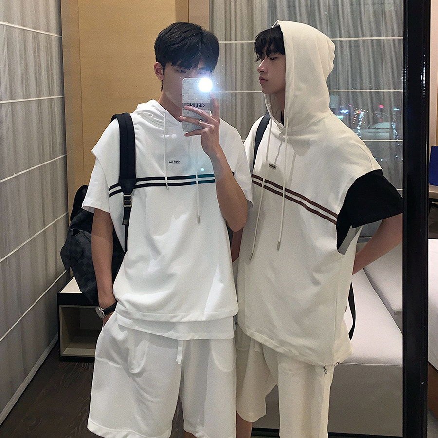 Hualun summer T-shirt handsome men's fashion sports suit men's hooded casual short-sleeved shorts handsome cotton