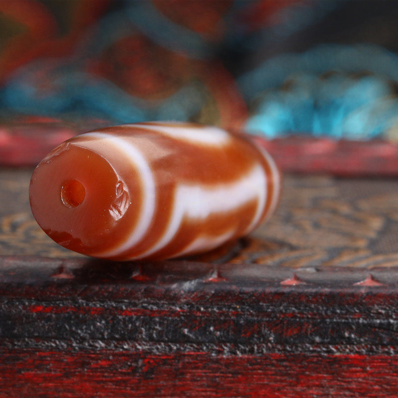 Natural chalcedony sugar color Cuosi old dzi bead Tibet genuine double heaven and earth dzi bead necklace pendant clavicle chain