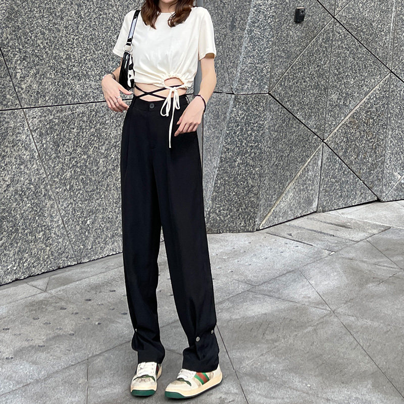 Seven4lee Black Horse Prince Black Summer Summer high waist vertical straight tube pants wide loose beam feet relaxed pants